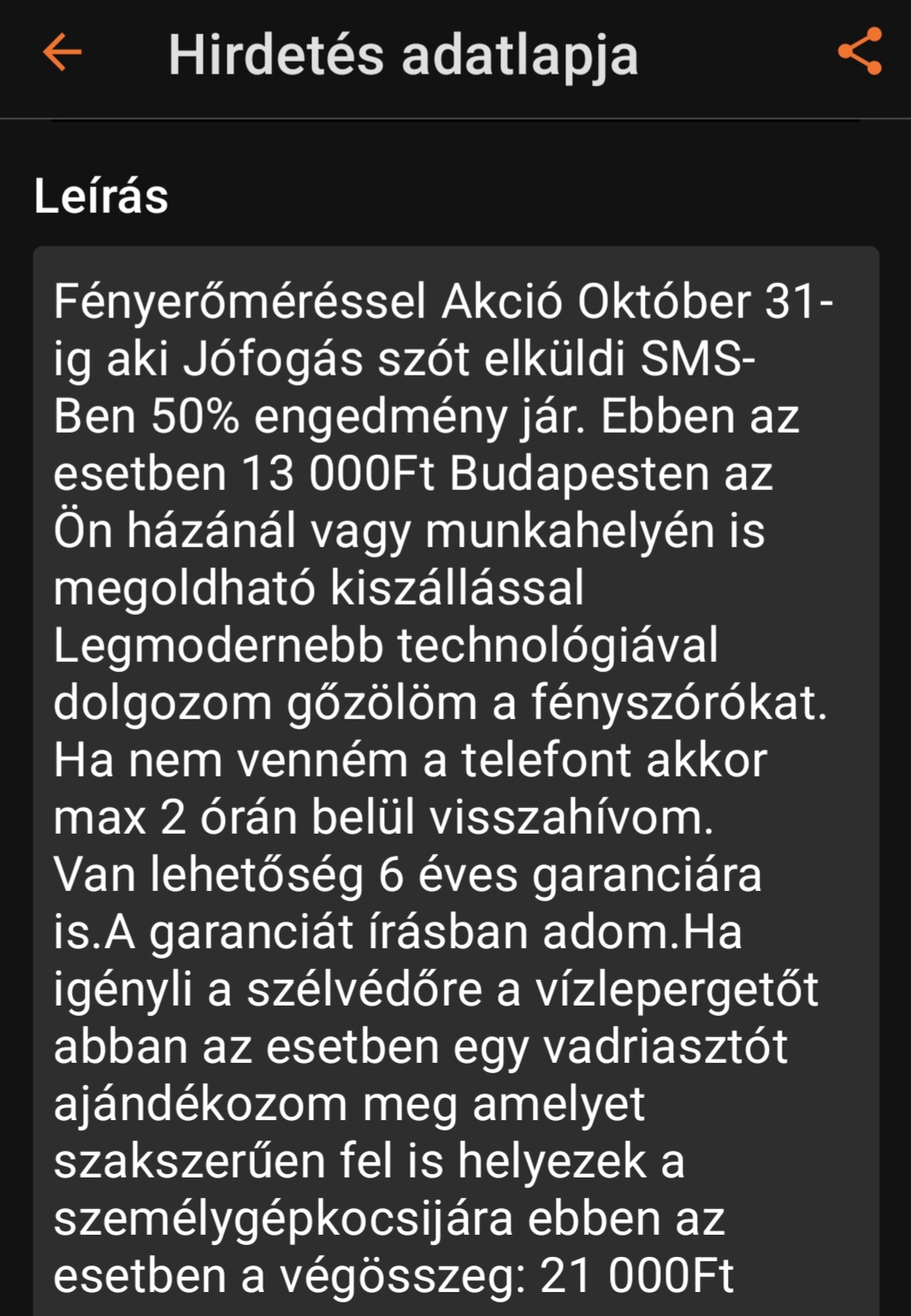 Nálam csak kiszállással megoldható a fényszórók felujítás. Aki minőséget akar a pénzéért az engem választ.